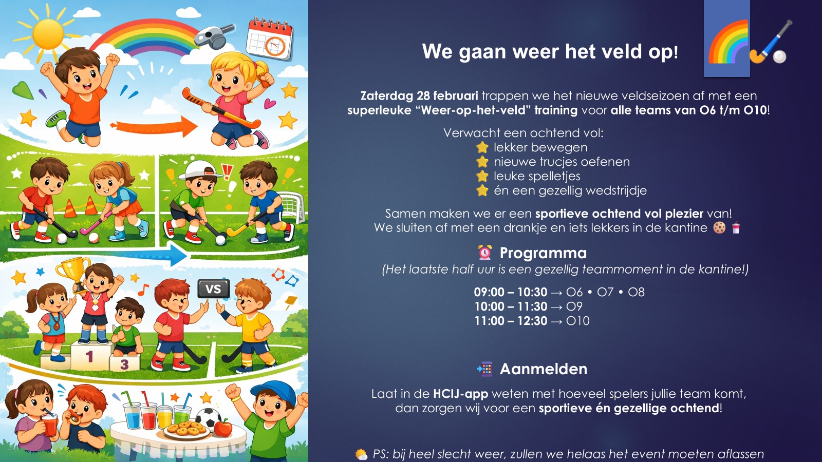 Zaterdag 28 februari trappen we het tweede deel van het veldseizoen af met een superleuke 'weer-op-het-veld' training voor de funkeys tot en met de O10 teams!